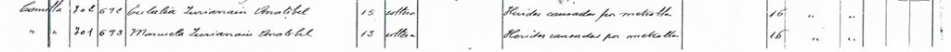 … María Leturiondo Eguía de 36 años de Villabona, herida de metralla en el tobillo derecho, siendo preciso amputarle la pierna. Además heridas de metrala en la espalda, muslo y brazo.